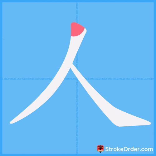 - Voici la seconde règle de traçage dont le Hanzi 人 est un exemple : on trace les traits du haut --> vers le bas
