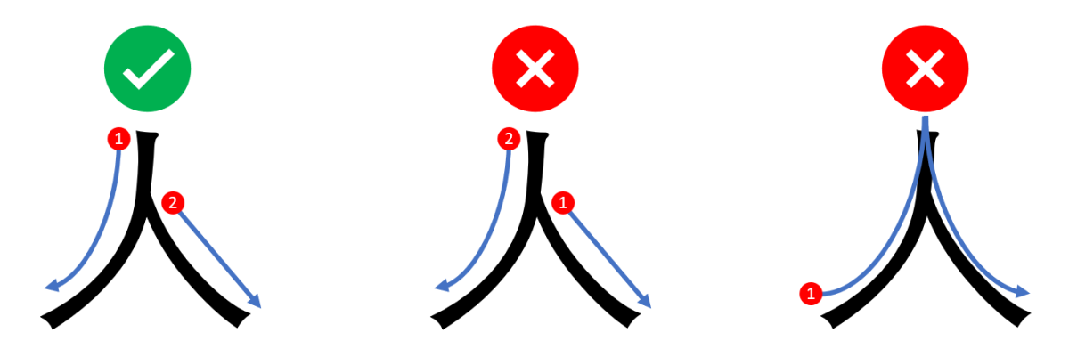 - La règle de traçage des traits "du haut vers le bas" nous interdit de remonter : la 3ème version est donc fausse