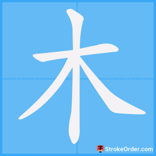 Ce Hanzi ne devrait pas vous poser de problème : il s'agit tout bêtement de la représentation pictographique d'un arbre, avec tous ses attributs (tronc, racines, branches).
