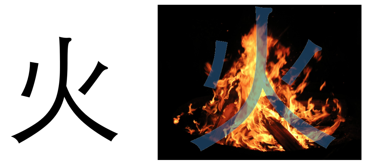 En l'occurrence, ce caractère représente un tas de bûches en train de brûler, surmonté de quelques petites flammèches dansantes.