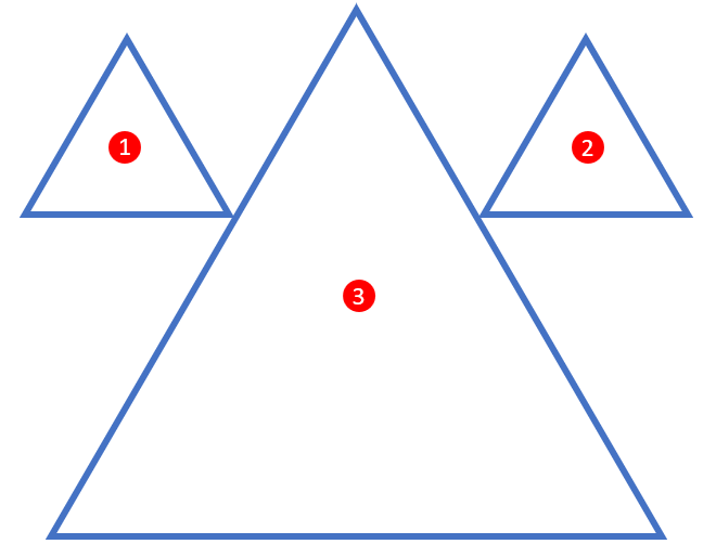 - Si vous plissez les yeux, vous voyez 3 triangles : 1 grand et 2 petits, comme ceci :