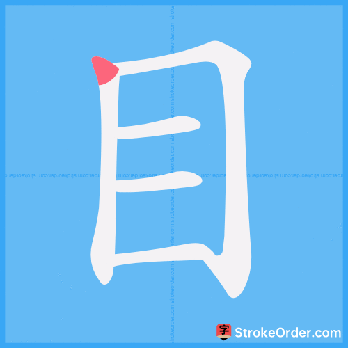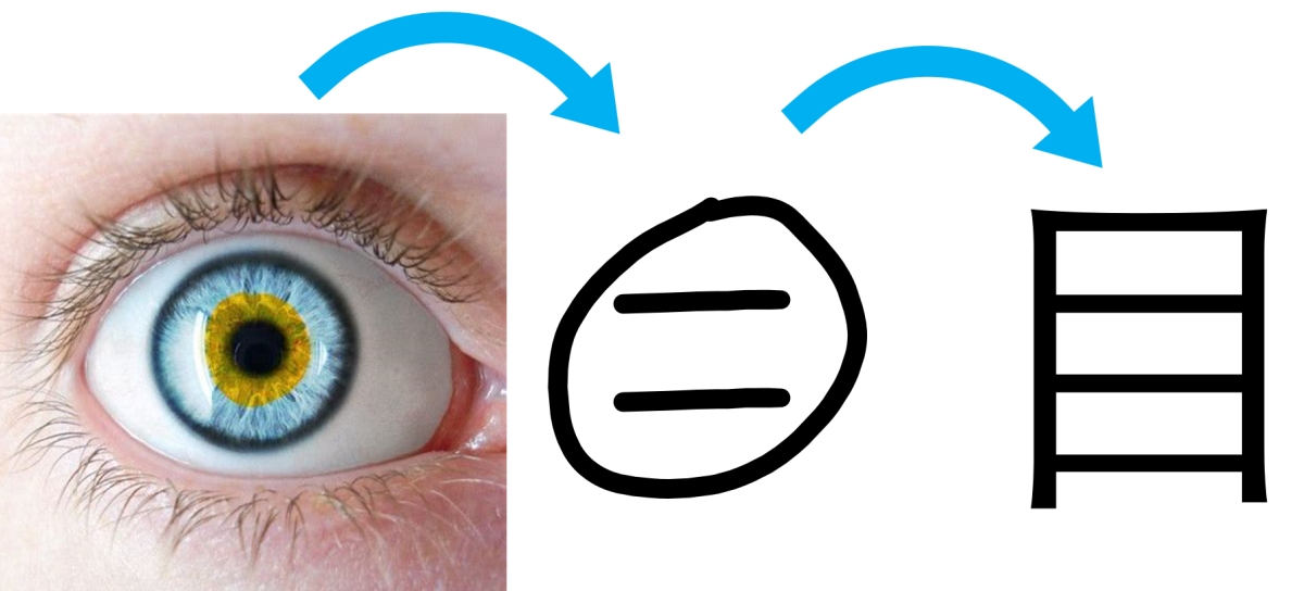En effet, exactement à la manière du Hanzi 日 soleil / jour que nous venons de voir, le Hanzi 目 de l’œil a certainement ressemblé au dessin d'un œil réel avant se simplifier.