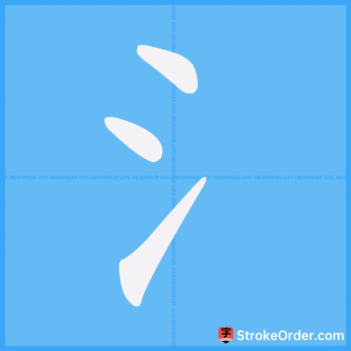 - La clef sémantique est celle de l'eau (en 3 traits), elle occupe la moitié gauche du Hanzi (attention : son 3ème trait est une exception à la règle "du haut vers le bas")