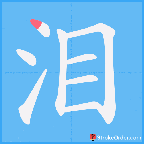 - Il se trace à l’aide de 8 traits : 3 traits pour la clef de l'eau, 5 traits pour le radical de l’œil