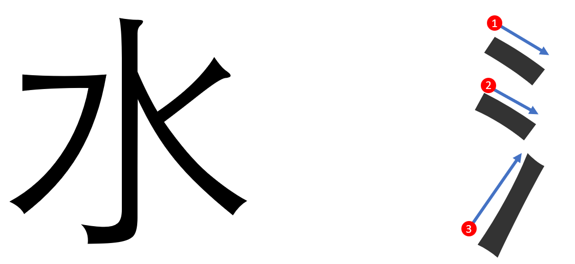 Il s'agit d'un héritage de la calligraphie : il est en effet courant en écriture manuscrite que ces 3 traits soient tracés en une seule vaguelette verticale, puis qu'on fasse remonter le pinceau pour attaquer la partie à droite du Hanzi.