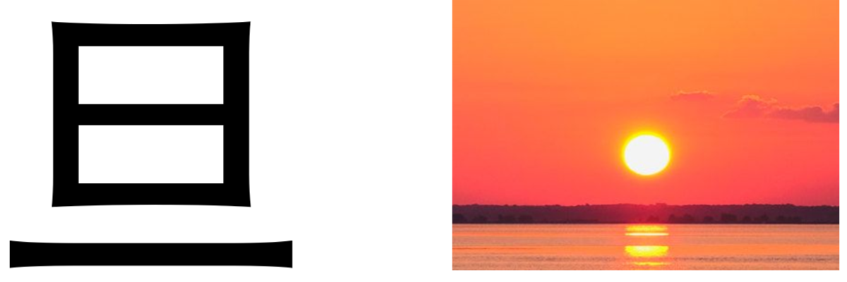 - La clef sémantique est celle du soleil, elle occupe l'essentiel de l'espace du Hanzi, en partie haute