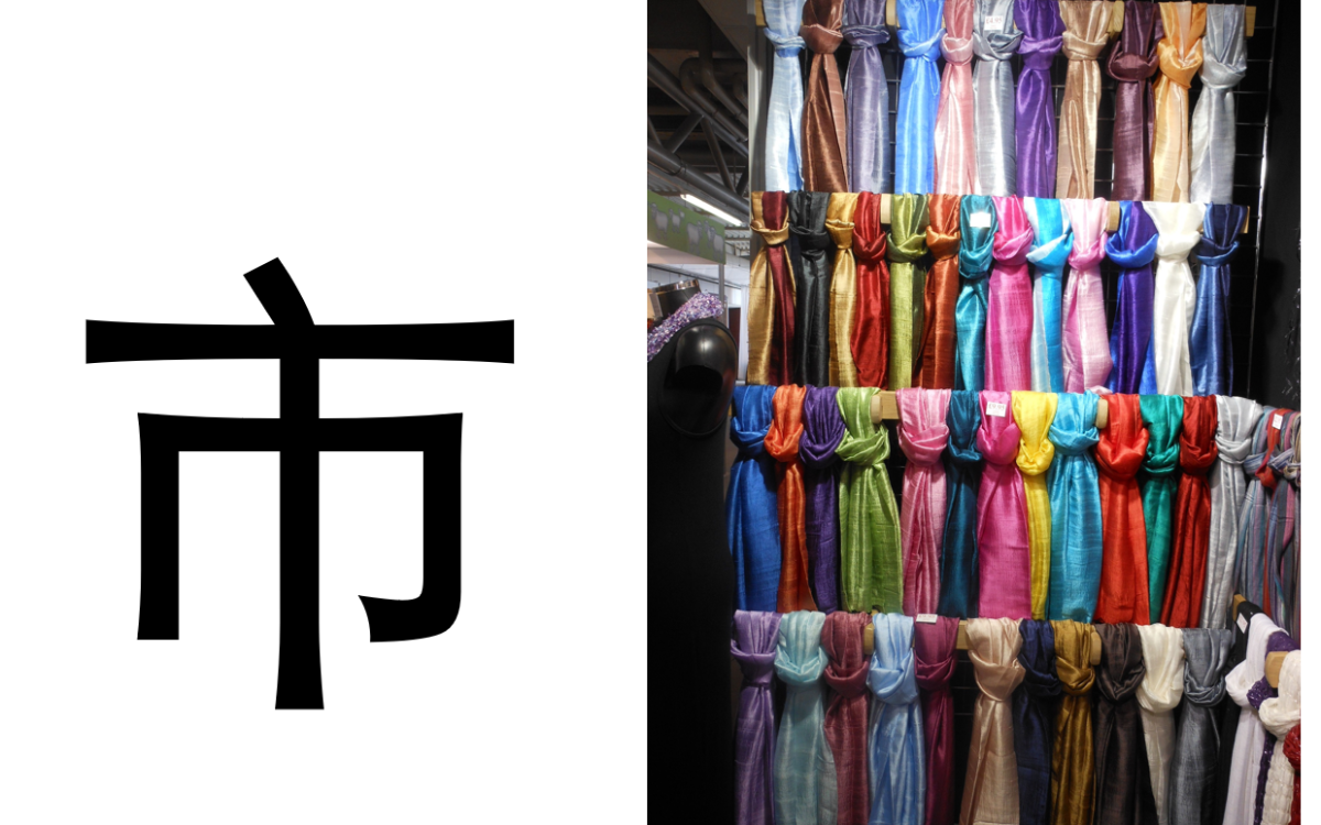 - 市 ville, marché (celui que nous venons d'apprendre)