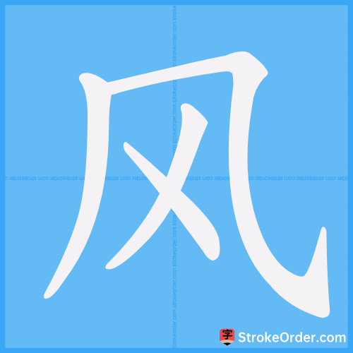 Dans ce Hanzi, la partie invisible du vent est symbolisée par les deux traits diagonaux qui se croisent : ils représentent les mouvements complètement libres que les courants aériens peuvent prendre.