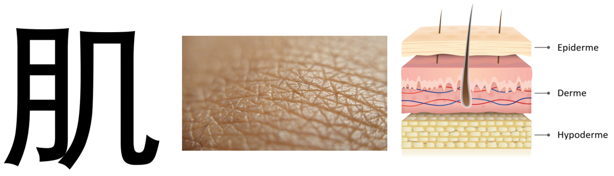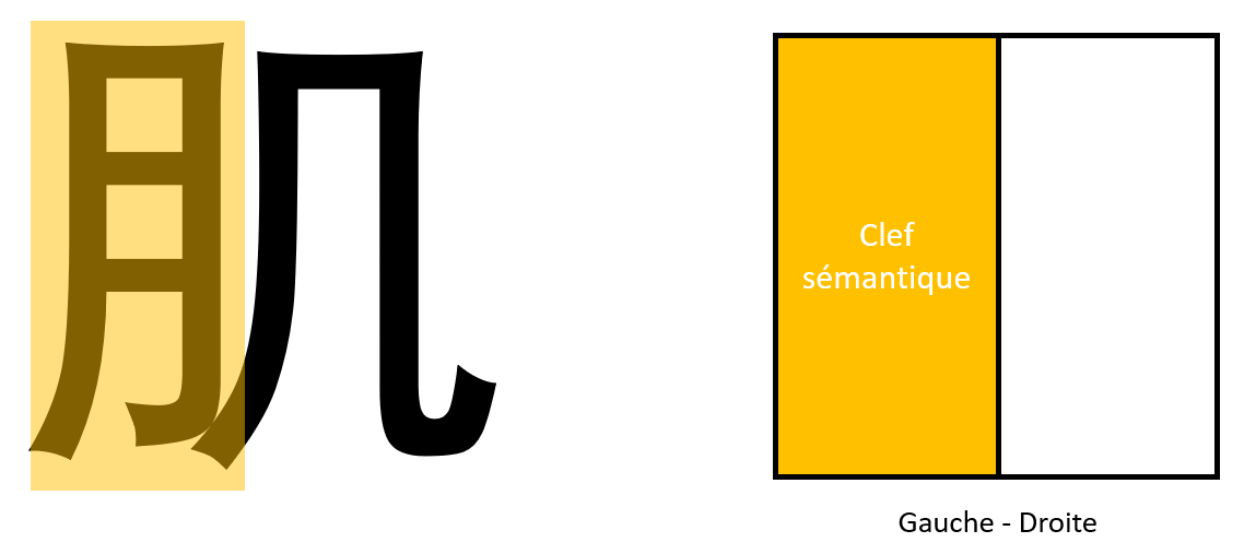 - La clef sémantique est celle du corps, de la chair, elle occupe la moitié gauche du Hanzi