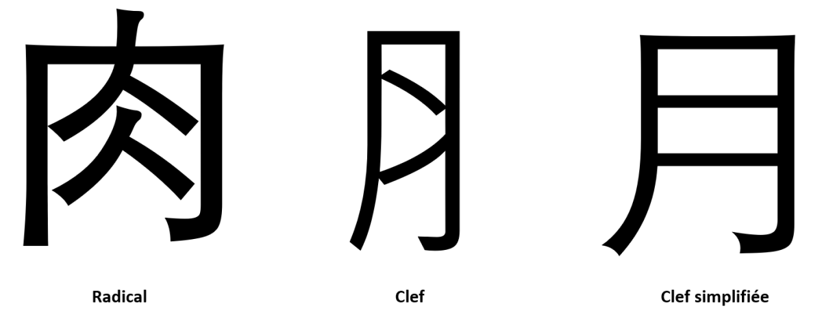 Mais vous avez bien lu, il s'agit bien de la clef 肉 chair / corps.