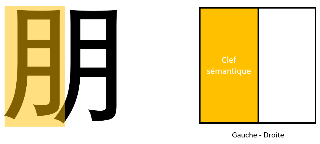 - La clef sémantique est celle de la lune, mais nous allons tricher et considérer qu'il s'agit de celle du corps, elle occupe la moitié gauche du Hanzi