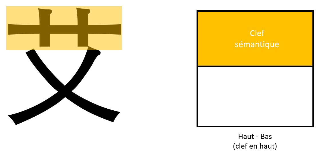 - La clef sémantique est celle du végétal, elle occupe la partie haute du Hanzi