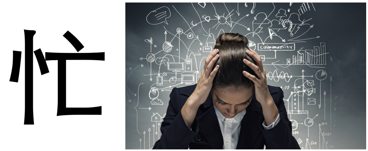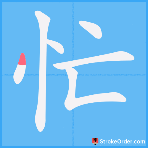 De cette manière, on peut lire le Hanzi comme suit : quelqu'un de pressé / occupé doit effacer ses sentiments afin de venir à bout de ses tâches.