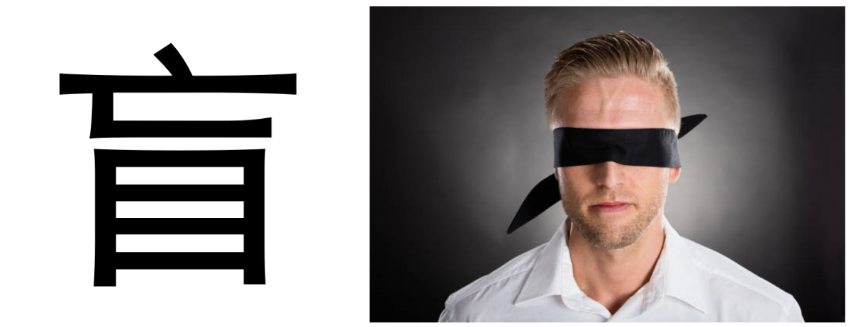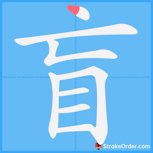 - 盲 Cécité, aveugle (clef de l'œil en partie basse)