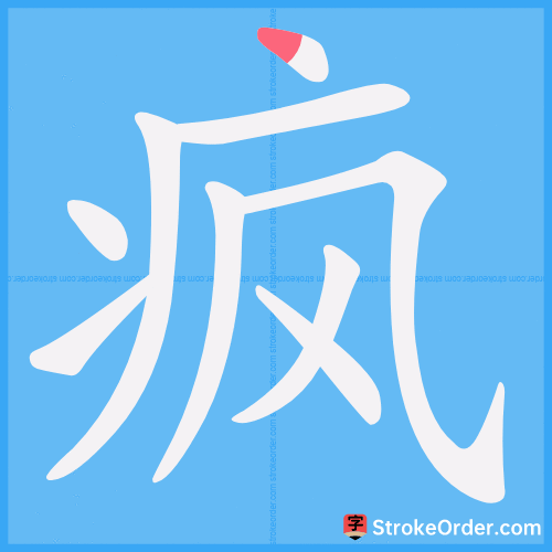 Autre manière de retenir ce Hanzi : rappelez-vous le geste que les gens font lorsqu'ils décrivent quelqu'un qu'ils croient fou.