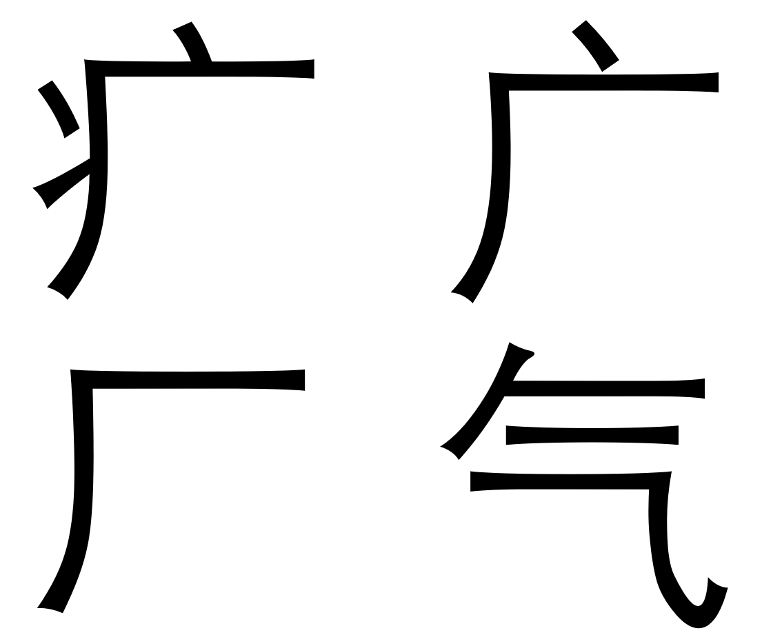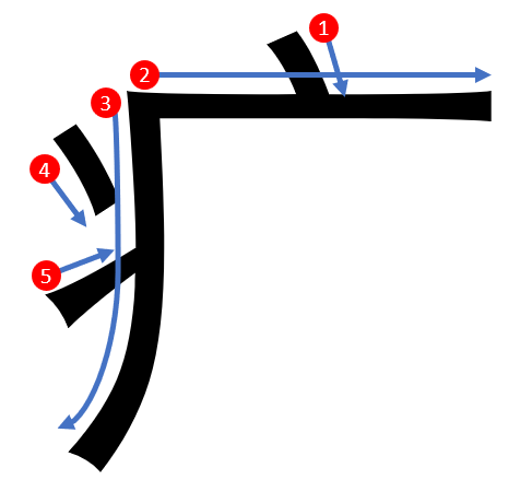 Pour les Hanzi de type "Falaise", on trace d'abord la clef en entier, puis ce qui se trouve à l'intérieur.