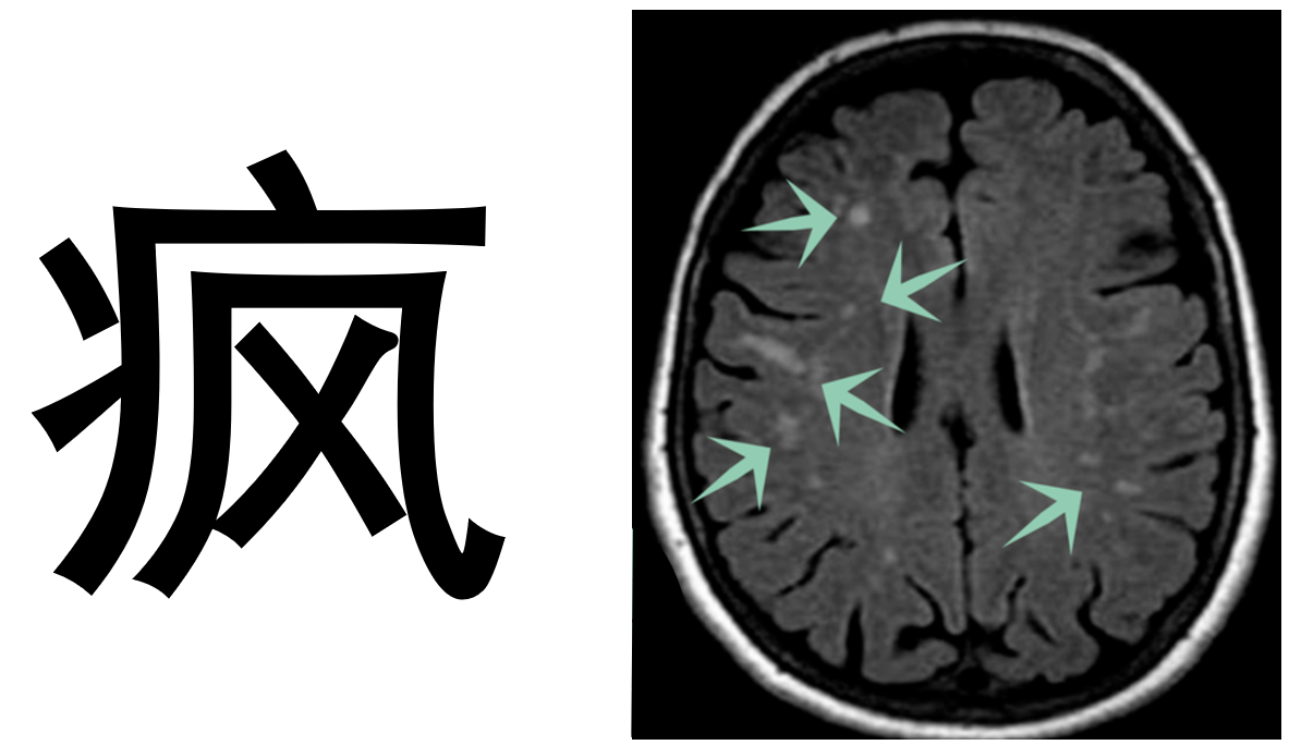 - Pour le retenir, on peut se représenter la migraine et la folie comme deux stades d'une maladie pour laquelle un vent interne s'attaque au cerveau de sa victime