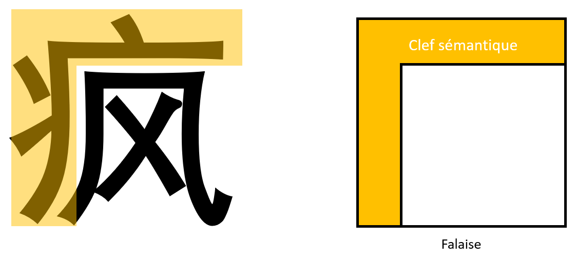 Or, dans une structure Falaise, le radical à l'extérieur est toujours la clef du Hanzi.