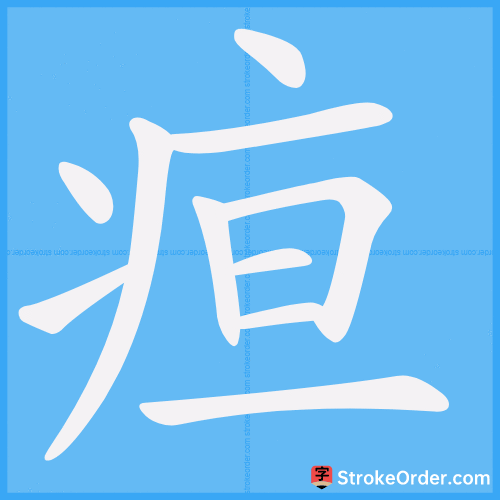- La clef sémantique est celle de la maladie, elle occupe les côtés gauche et haut du Hanzi