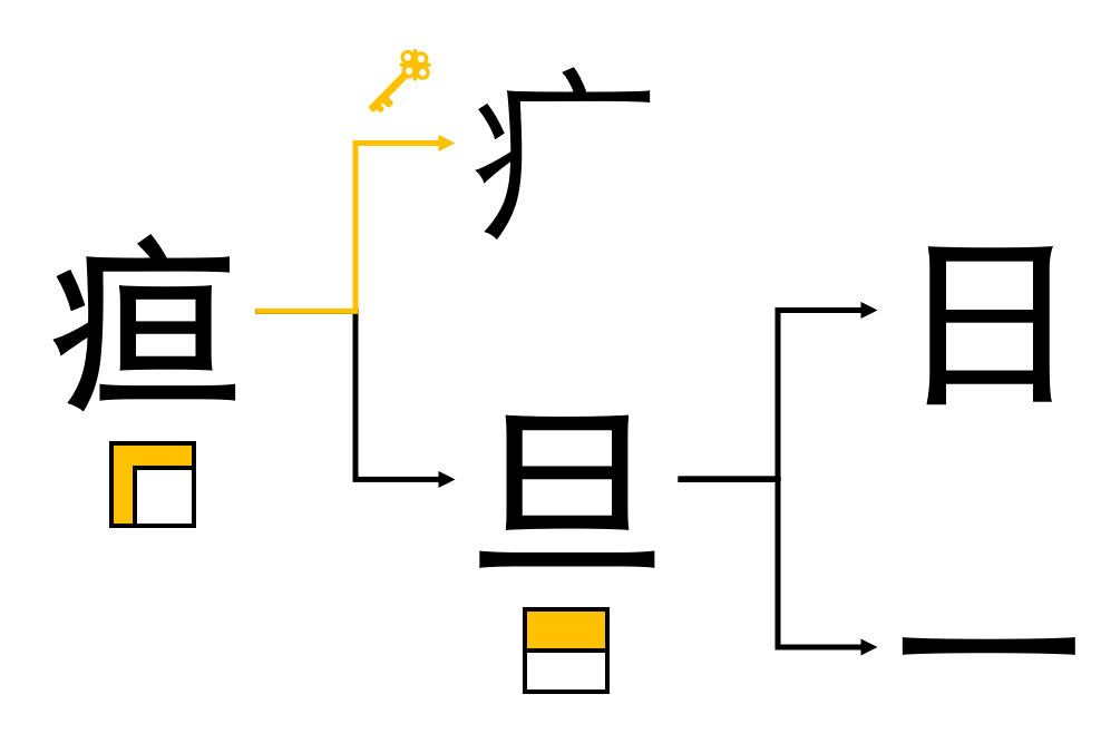 Aucun piège : tracez simplement la clef de la maladie selon l'ordre que nous avons découvert lors du dernier chapitre, puis l'aube 旦 à l'intérieur.