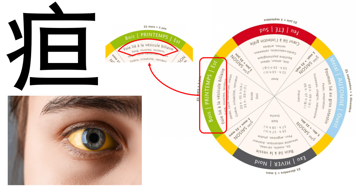 - 疸 "jaunisse" est la maladie liée à l'aube du cycle corporel