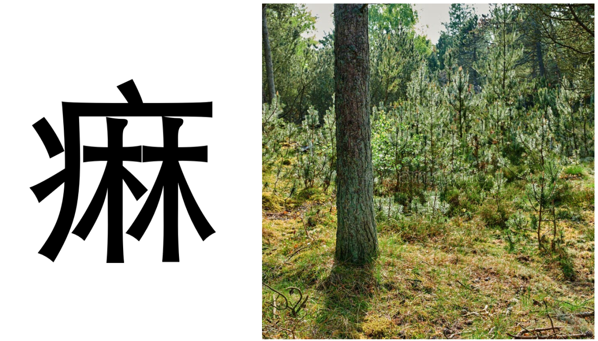 Tracez simplement la clef de la maladie, et le bosquet 林 à l'intérieur.