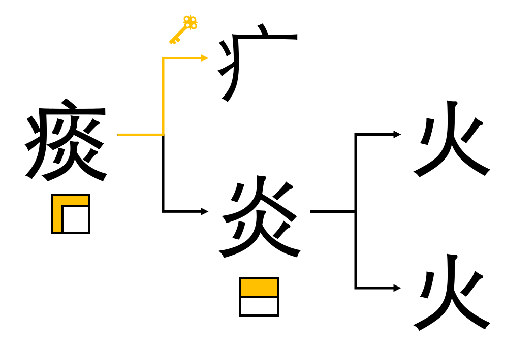 Tracez simplement la clef de la maladie, puis la flamme 炎 à l'intérieur.