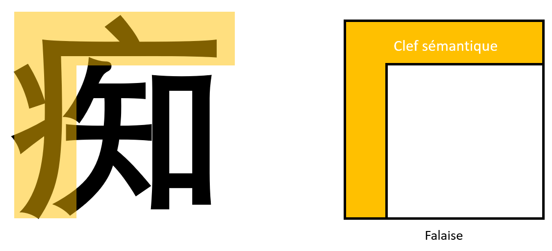- La clef sémantique est celle de la maladie, elle occupe les côtés gauche et haut du Hanzi