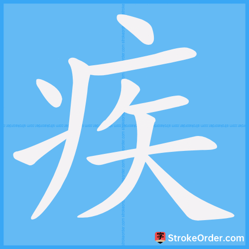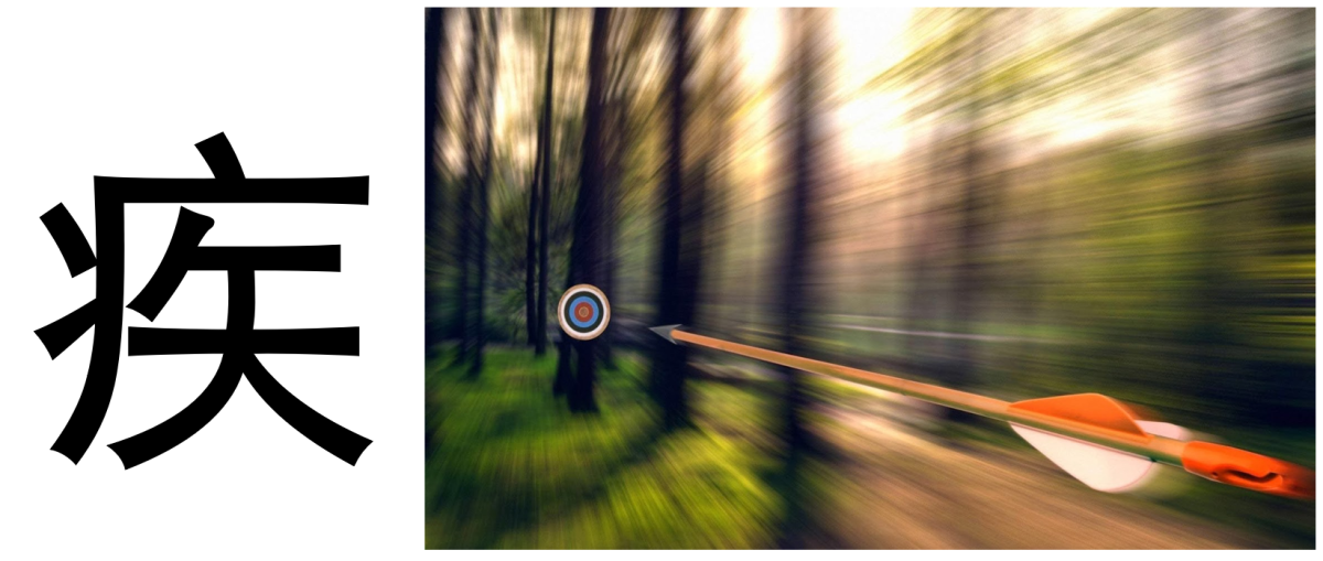 Étrange : la rapidité est exprimée à l'aide d'un Hanzi utilisant la clef de la maladie...